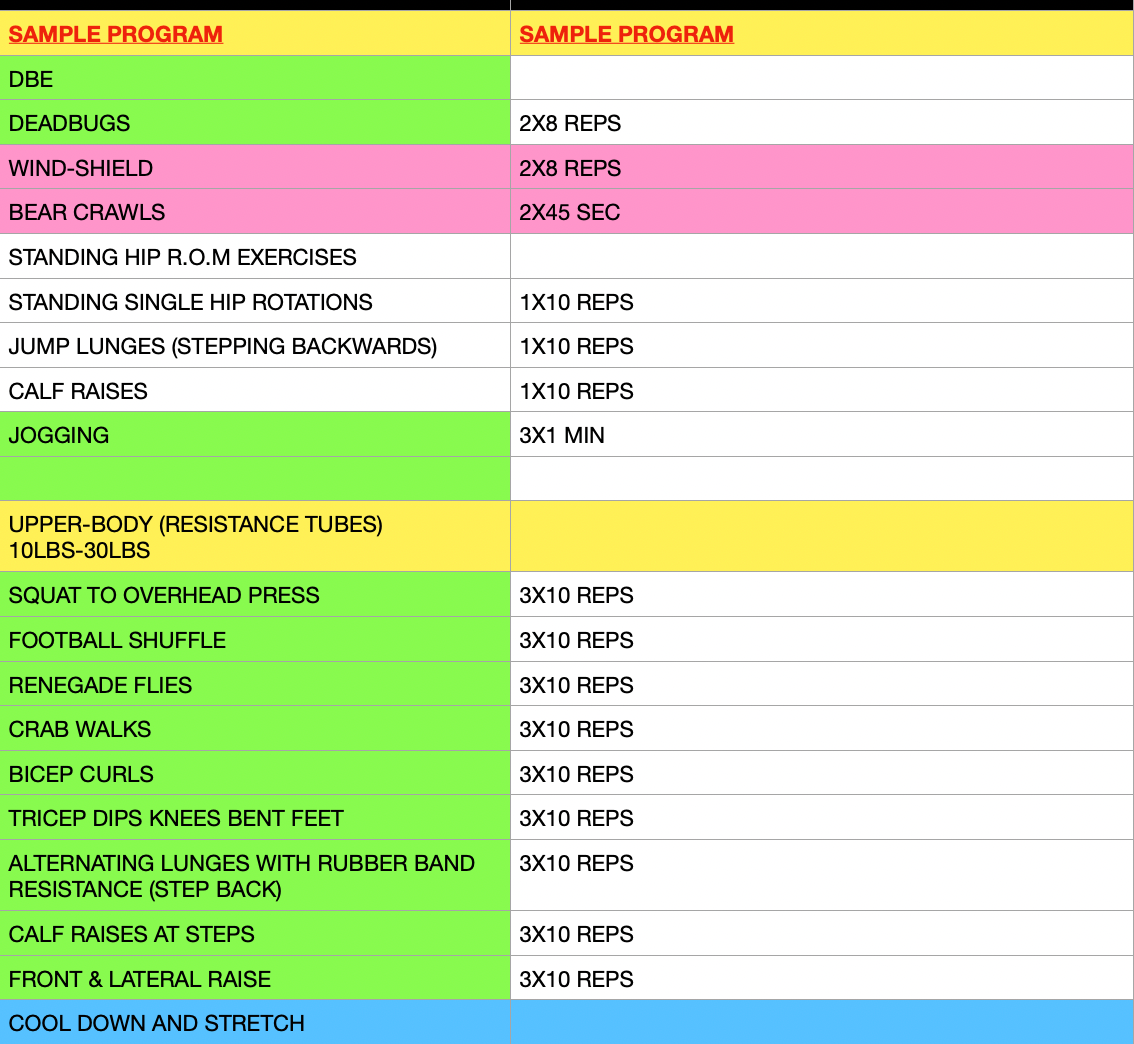 - Session Schedule: Three sessions per week, each lasting one hour.